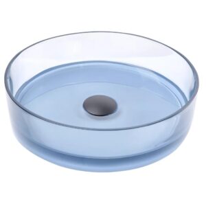 Illuminate your bathroom with the warm. radiant glow of the Vetra Slate Blue Basin. Crafted from premium UV-stabilised translucent resin stone. this round above-counter basin creates a stunning visual focal point as it captures and softens ambient light. Compact yet striking. it’s the perfect feature for designer bathrooms seeking a touch of modern luxury.