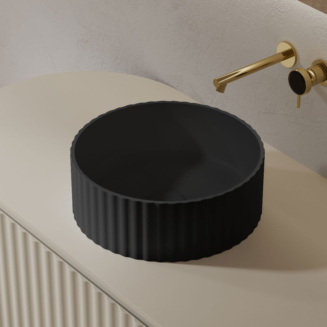 380mm Fluted Solid Surface Stone Round Above Counter Basin