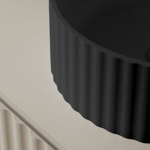Elevate your bathroom with the elegant Flora 380mm Basin. featuring vertical V-groove fluting and a refined matte stone finish. Designed with a flat base for easier maintenance and stability. it's both a statement piece and a practical addition to any vanity.
