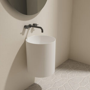 A striking sculptural addition for bathrooms where modern form. clean lines. and smart space-saving design come together.